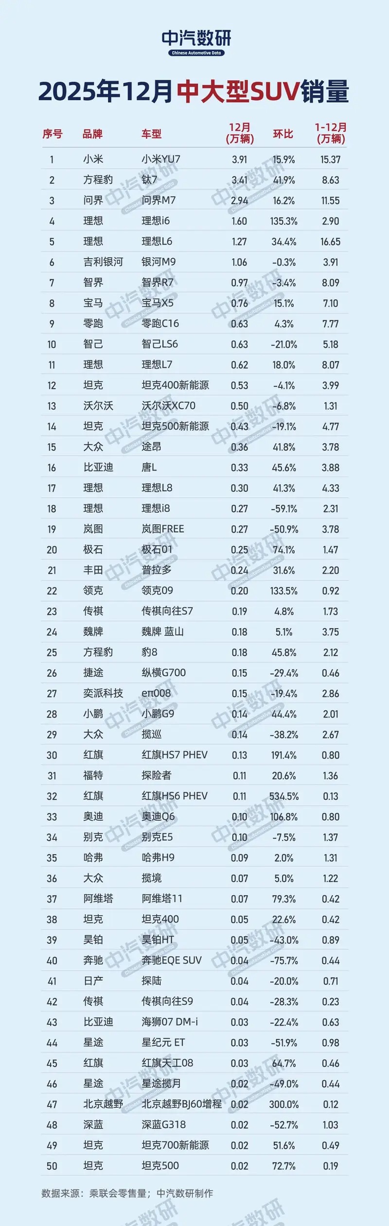 从2025年12月及全年数据看,中大型SUV市场的竞争逻辑已发生本质变化: