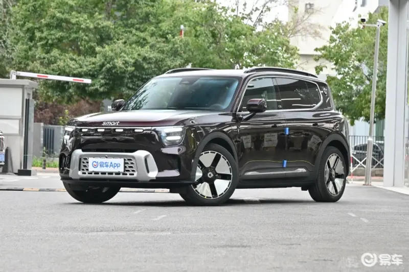 smart精灵#5在外观设计上明显有着奔驰GLB车型的影子,延续了“感性·灵锐”的设计语言,整体风格既有硬派越野的方正线条,又有时尚灵动的圆润造型。新车采用封闭式前格栅设计,配备LED贯穿式前大灯组,并错位嵌入了四颗LED日间行车灯组。前包围的散热口面板采用多孔设计,两侧配有导流槽,车辆的轻越野属性比较明显。