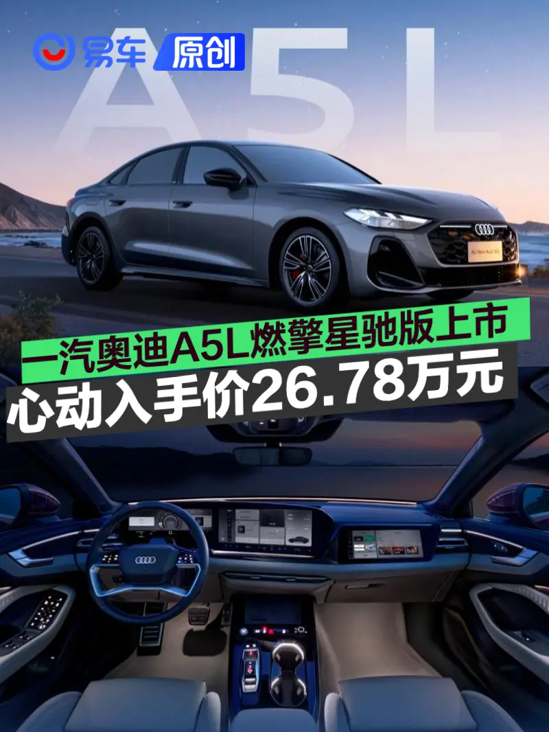 易车讯 1月30日,一汽奥迪宣布A5L燃擎星驰版正式上市,售价 28.58 万元,心动入手价26.78万元。新车主要在配置上进行了调整升级,定位介于在售的运动版 Plus和乾崑智驾版之间,带给消费者更多选择空间。